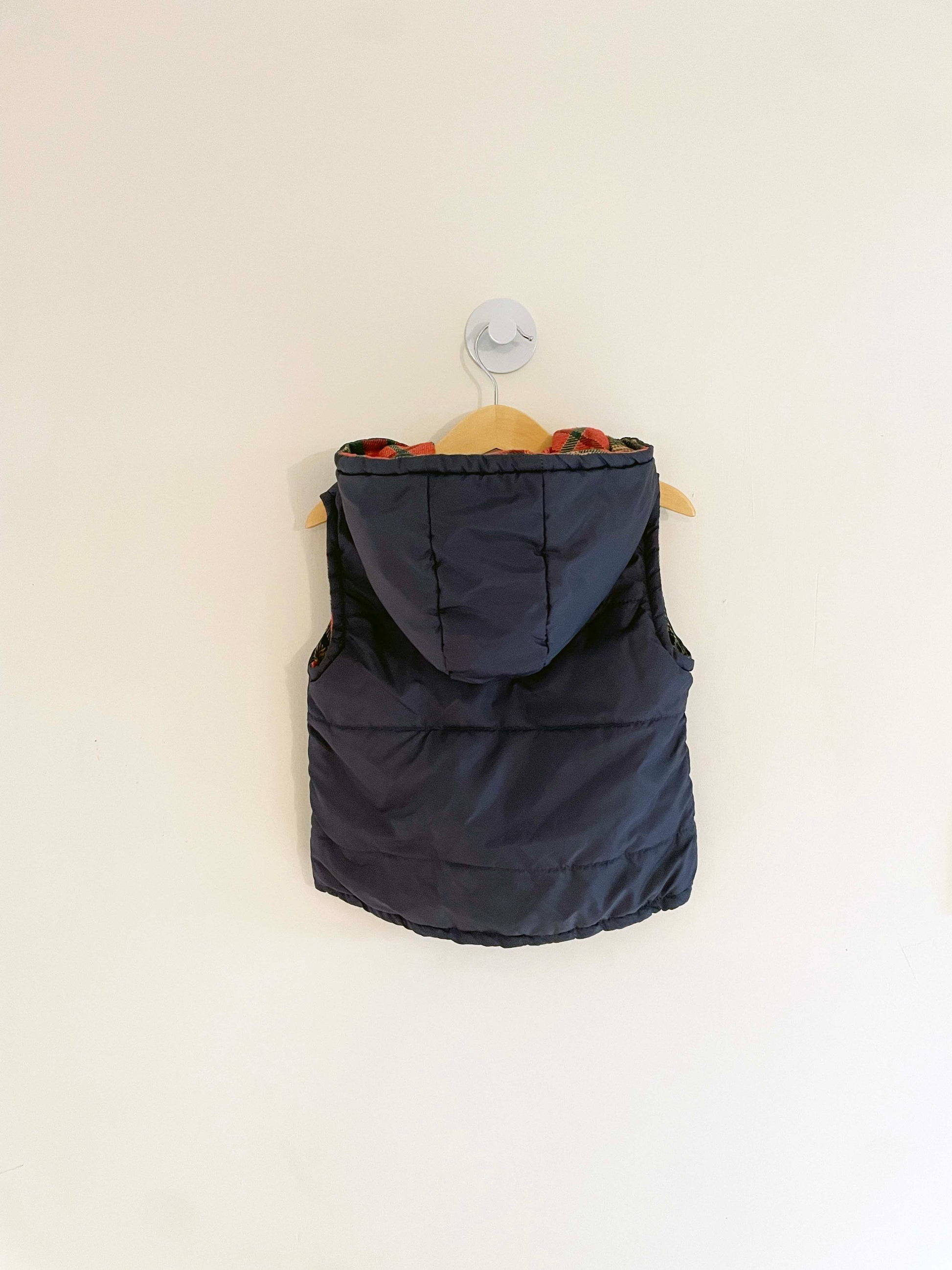 Assorted Brands puffer vest with embroidered bunnies and flannel lined hood.