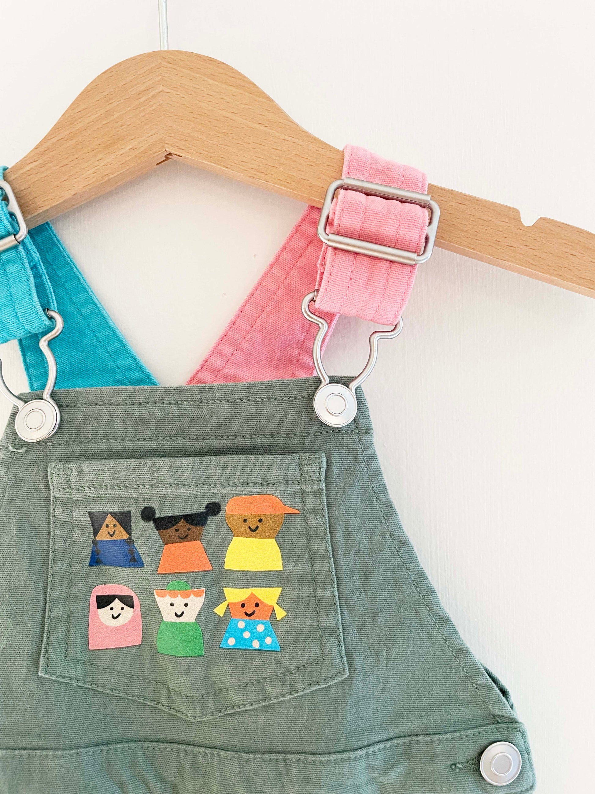 Christian Robinson x Target printed overall with mismatched straps. Snap closure along inseam.