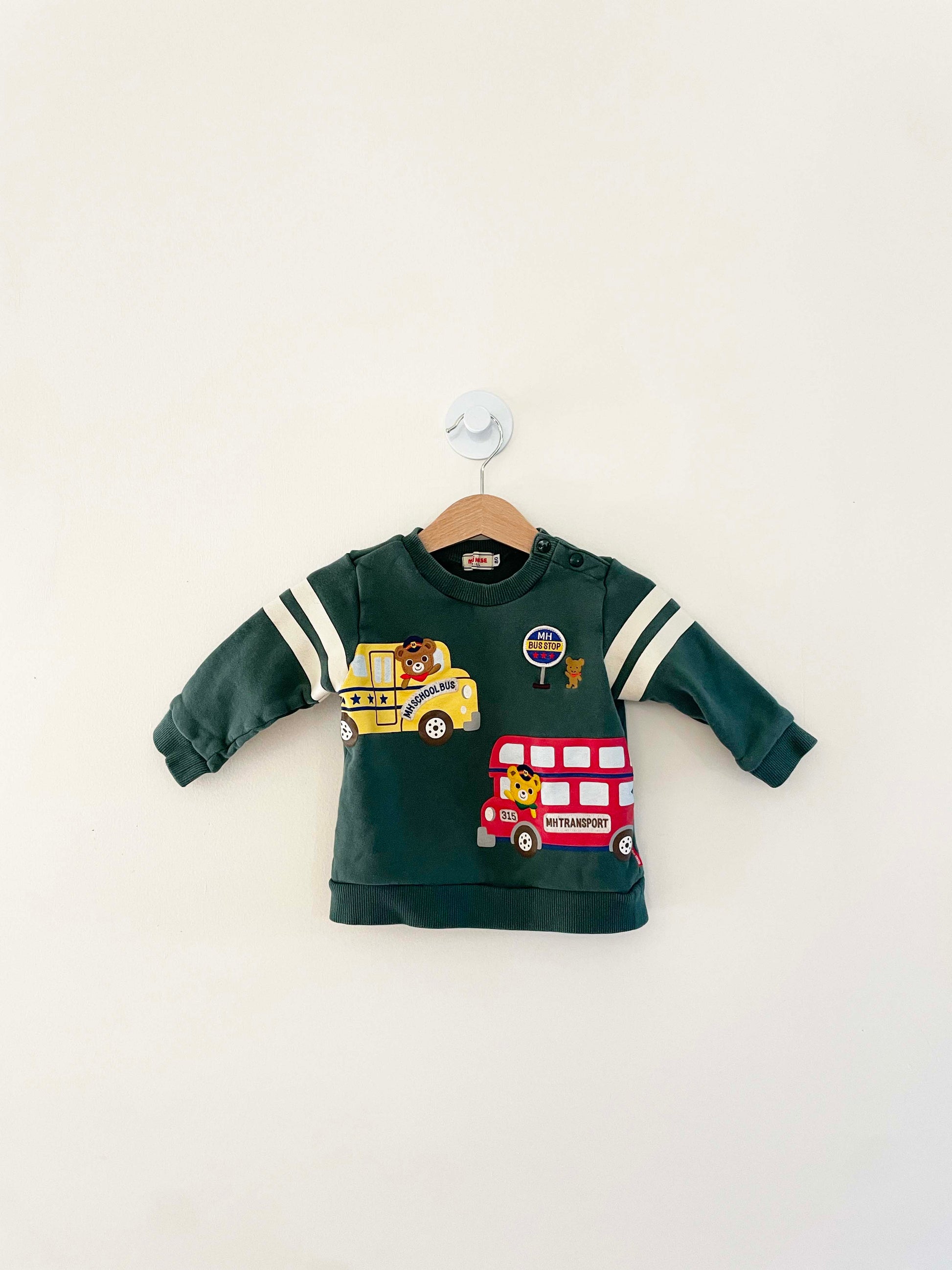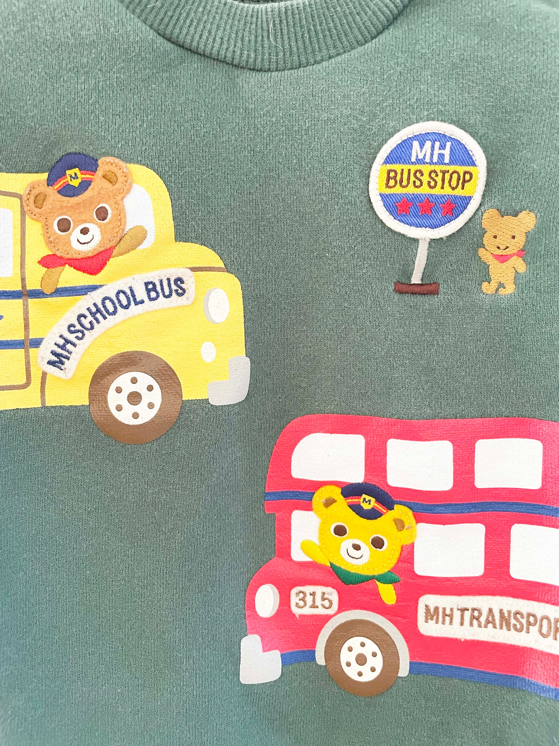 Miki House Japan graphic sweatshirt w/ embroidery and patch details.