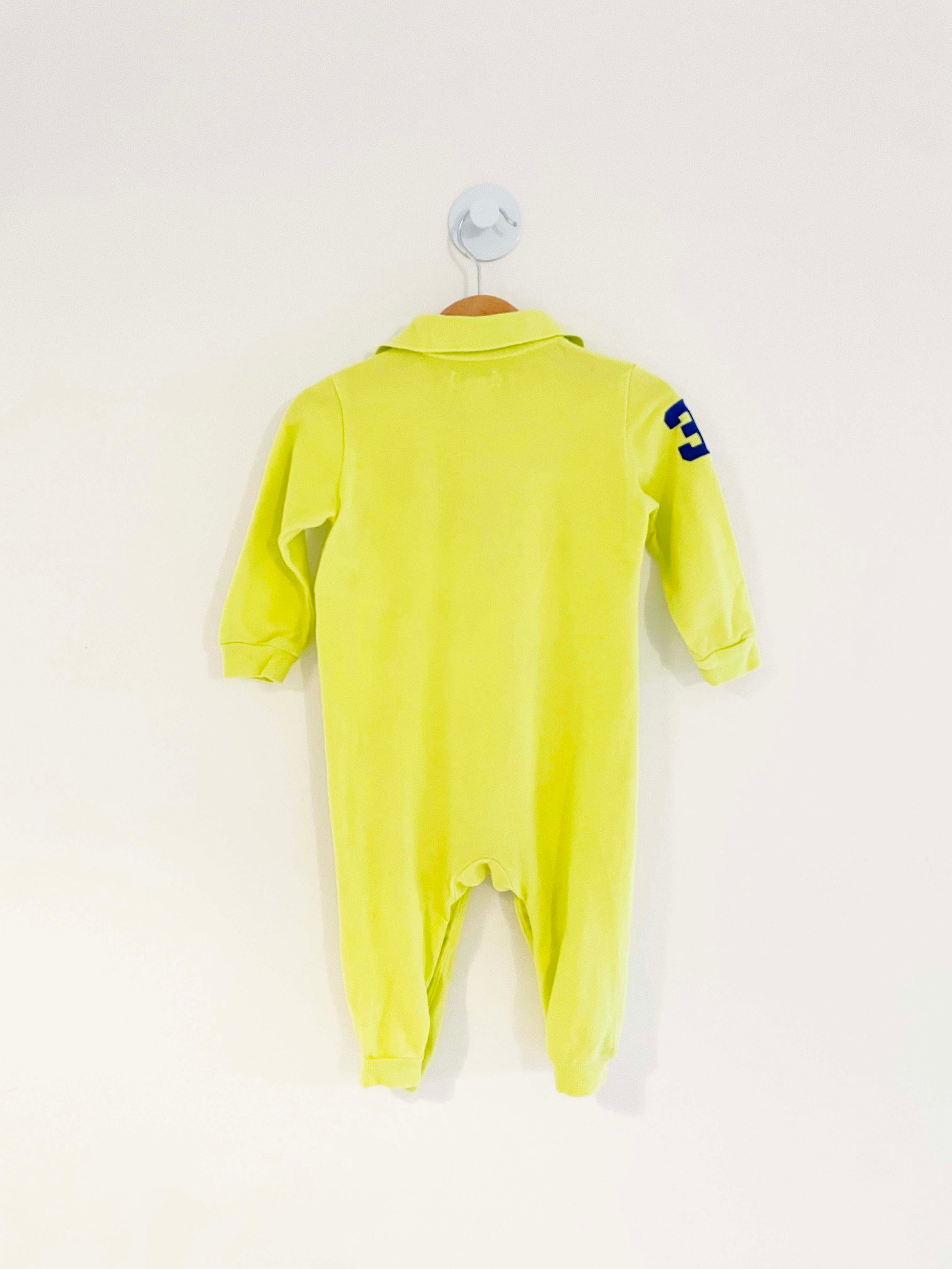 Ralph Lauren long sleeve and pant logo jumpsuit. Features embroidered logo at chest, and snap closure along inseam.