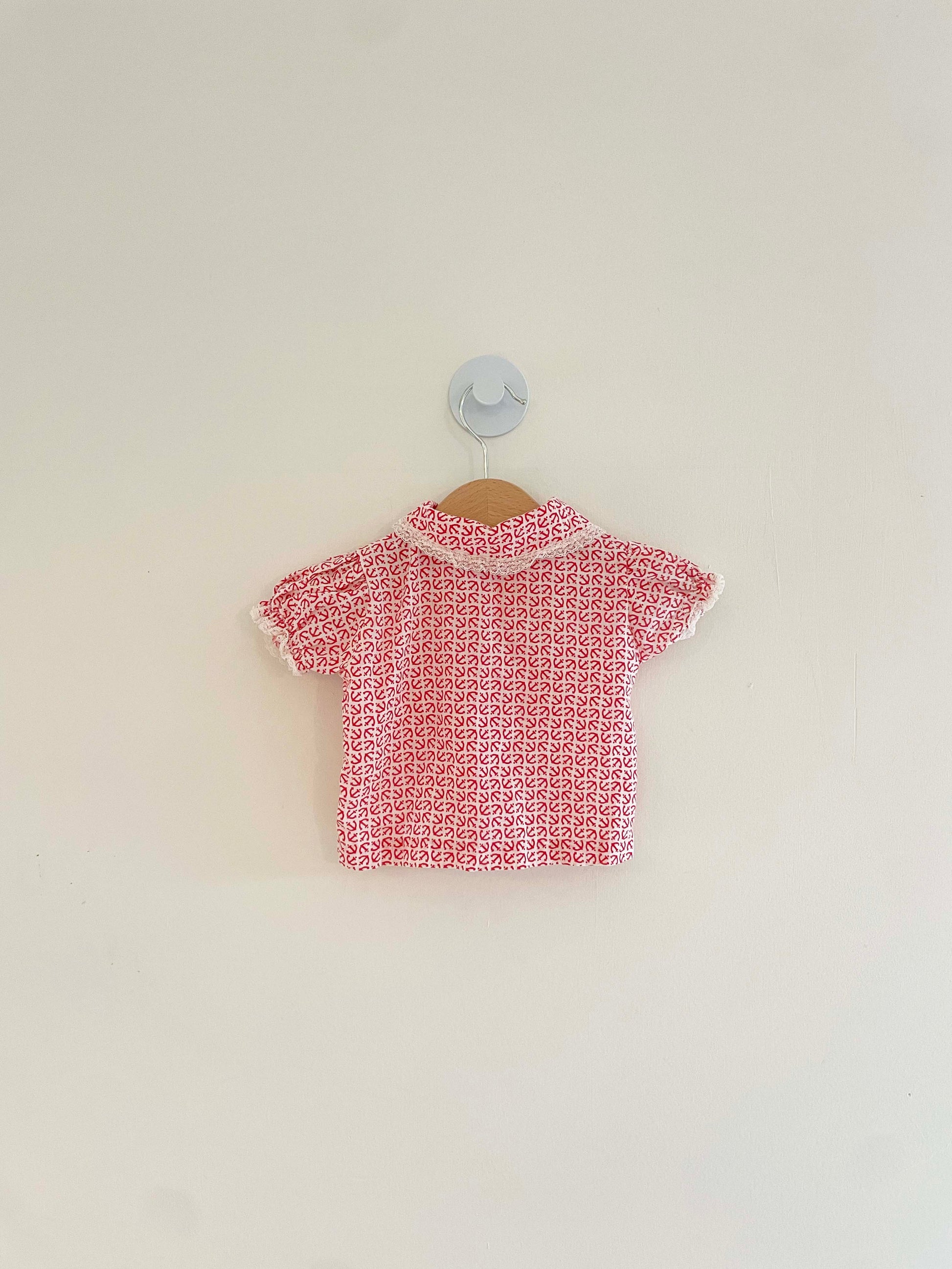 Vintage Button Down Top w/ Lace Detail / 3-6M