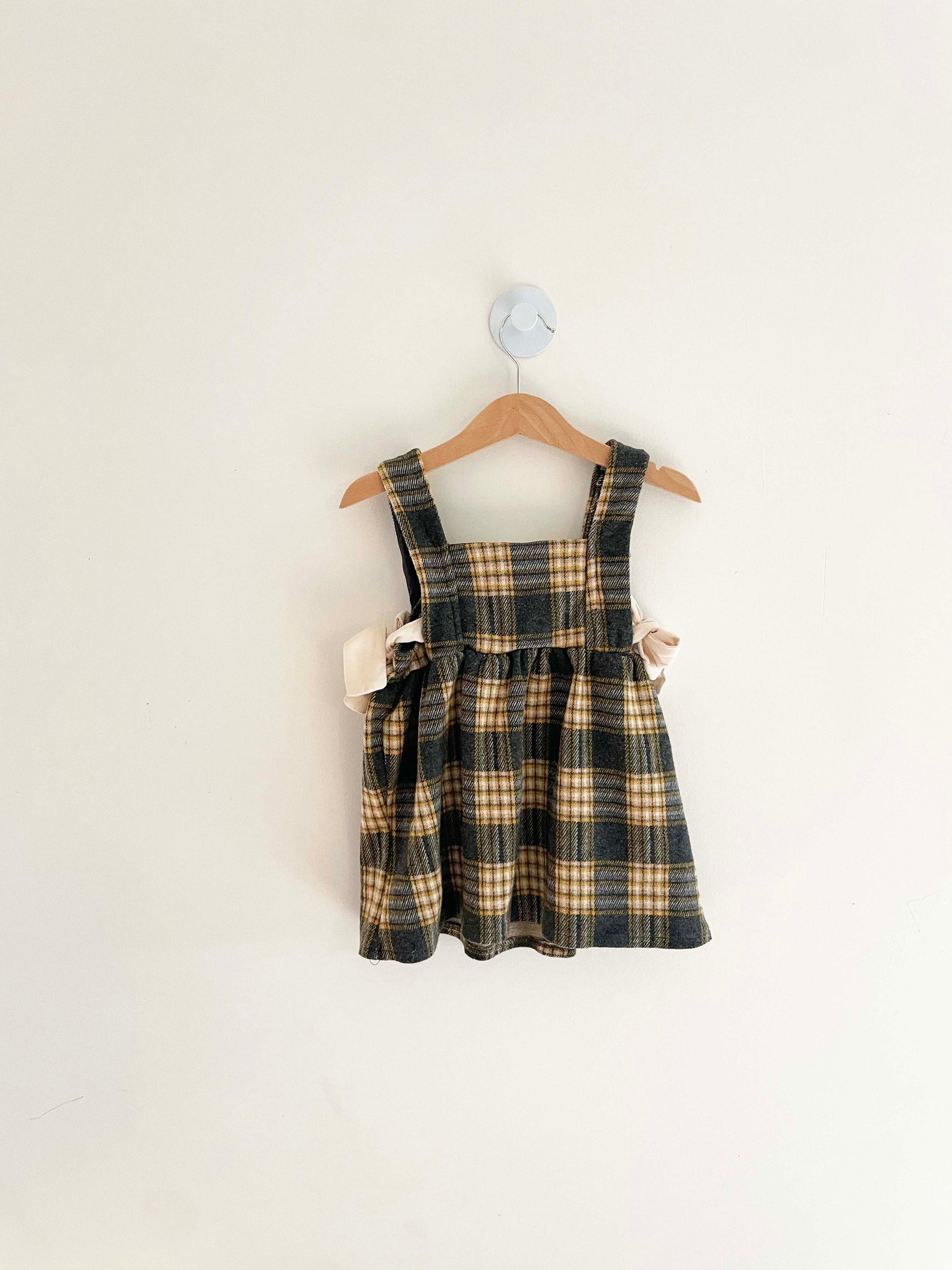 Zara two piece plaid dress and shirt set with ties on side.