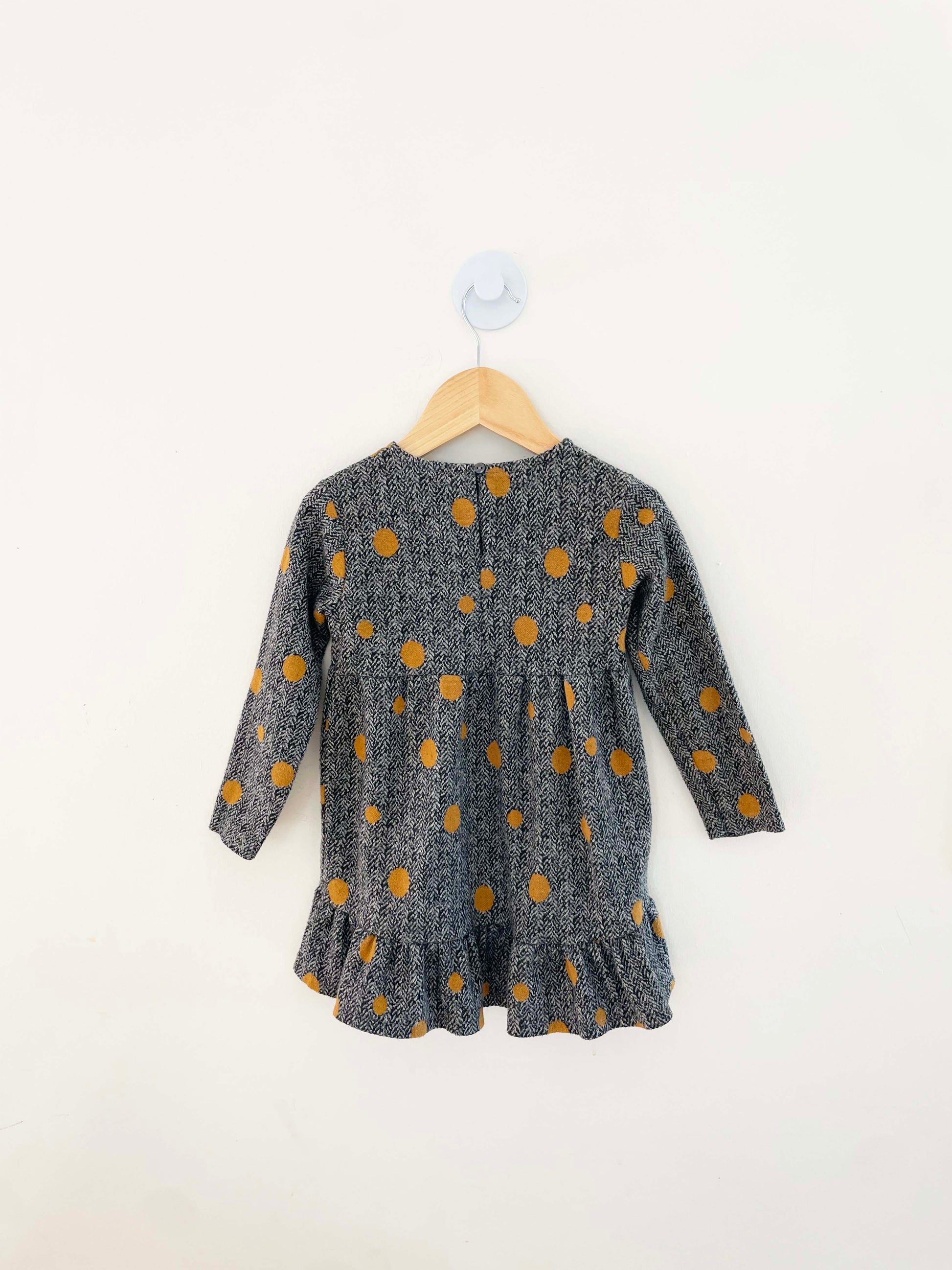 Zara polka dot dress w/ long sleeve and ruffle detail on bottom.